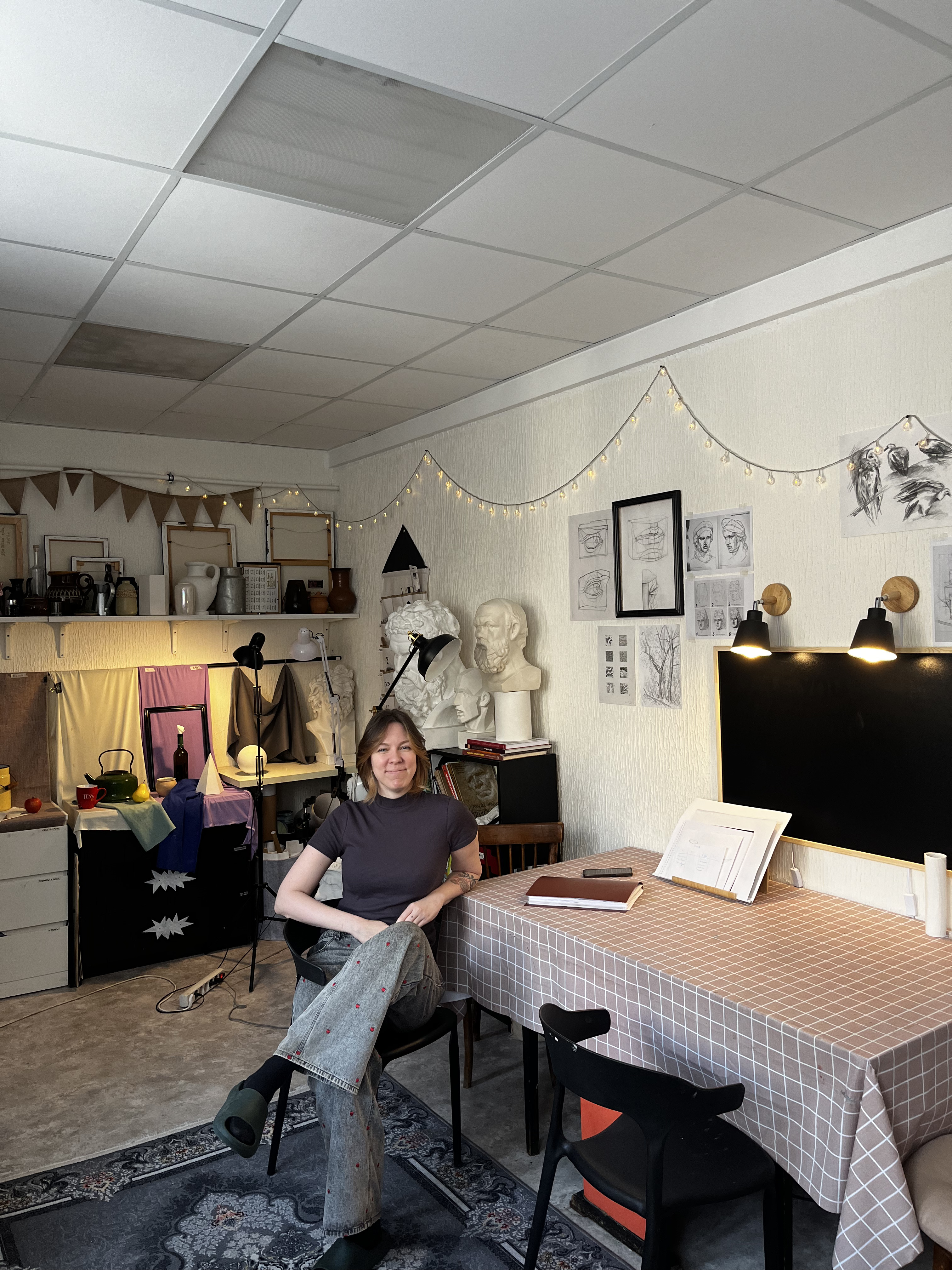 У меня была мечта создать пространство, сообщество, где каждый мог бы обучаться, раскрывать себя, создавать работы в своем стиле — что-то наподобие арт-резиденций. Но для этого всего нужно много денег, поэтому идем постепенно. Мастерская, где мы находимся — промежуточный этап. В какой-то момент мне стало сложно тянуть все одной, я кинула клич, и сейчас вместе со мной работают еще три человека.